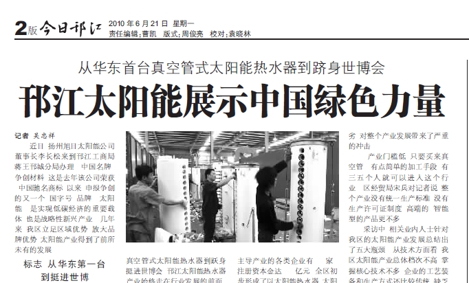 當(dāng)前位置:首頁 > 新聞中心 > 媒體關(guān)注 > 今日邗江報(bào):邗江太陽能展示中國綠色力量